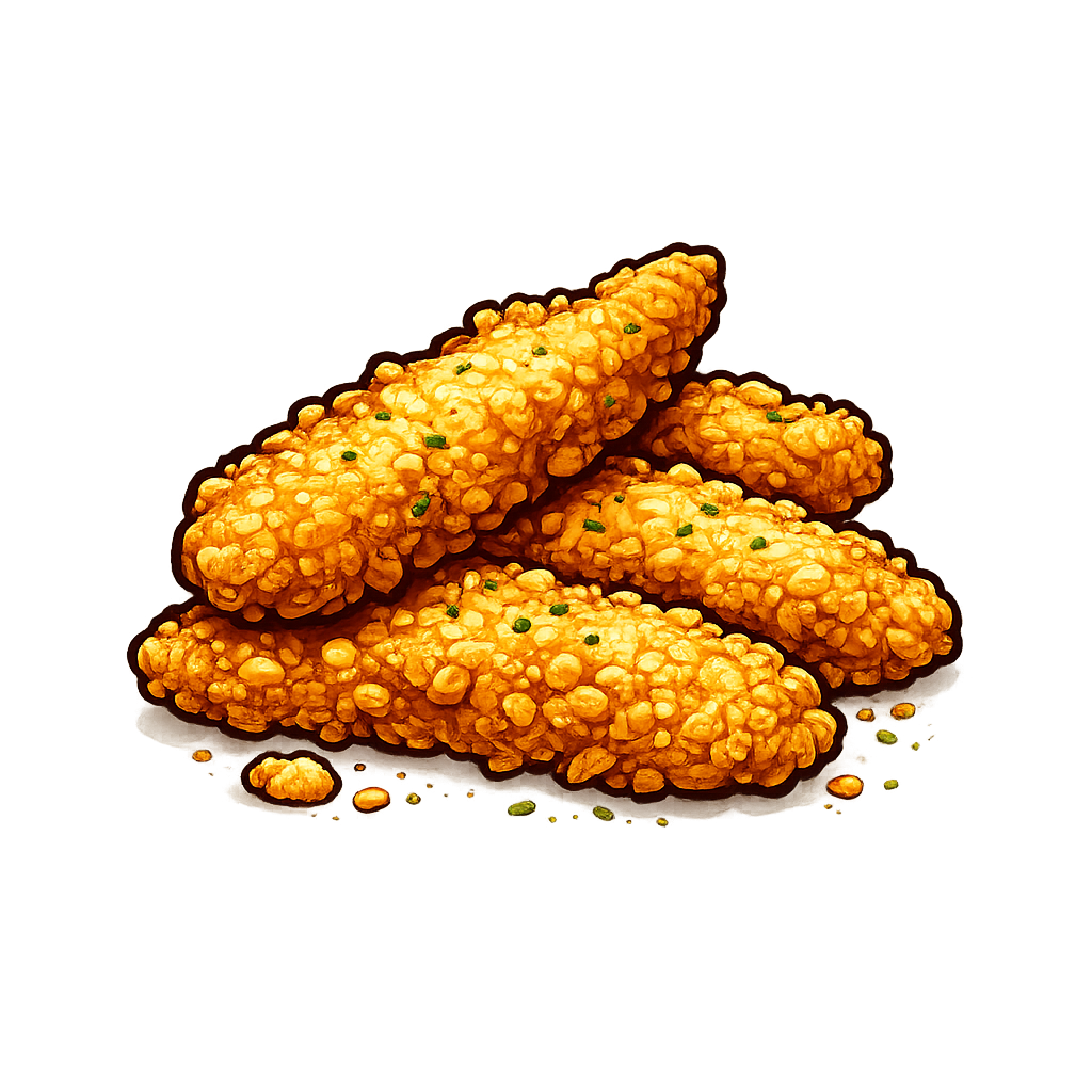 Four golden, hand-breaded chicken tenders—crispy on the outside, juicy on the inside. Dippable. Shareable. Dangerous.